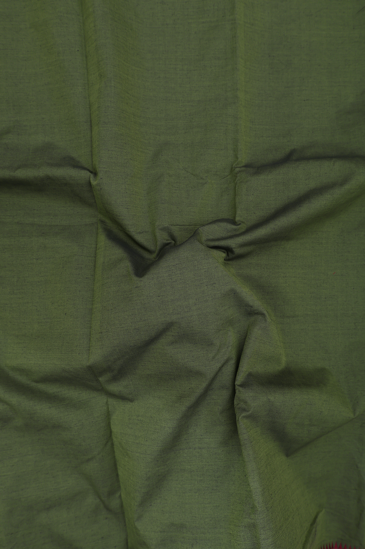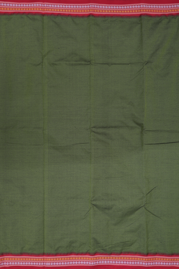 Dharwad Cotton Saree In Olive Green With Contrast Border