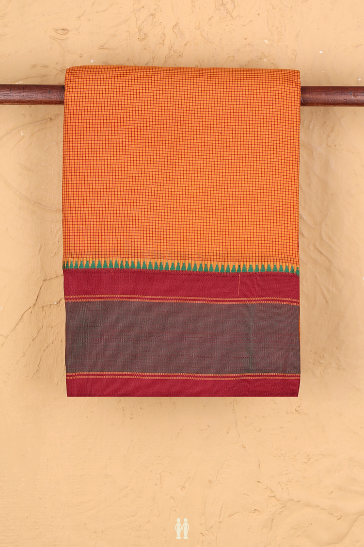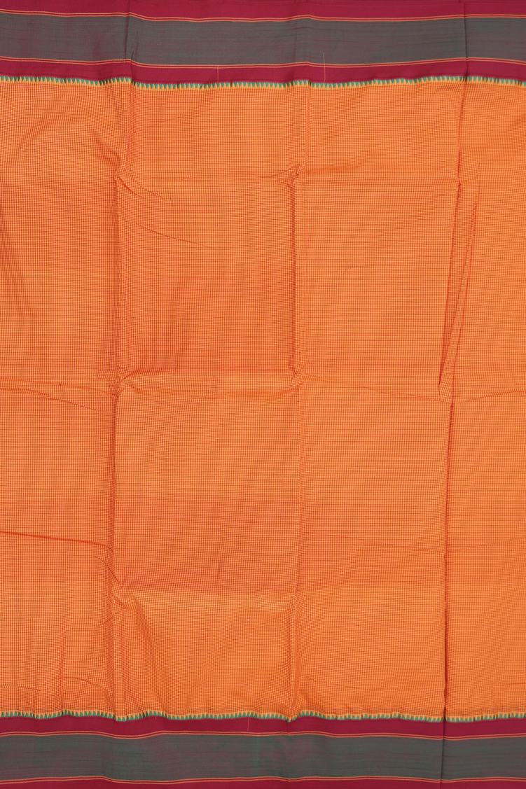 Dharwad Cotton Saree In Orange With Checks Design