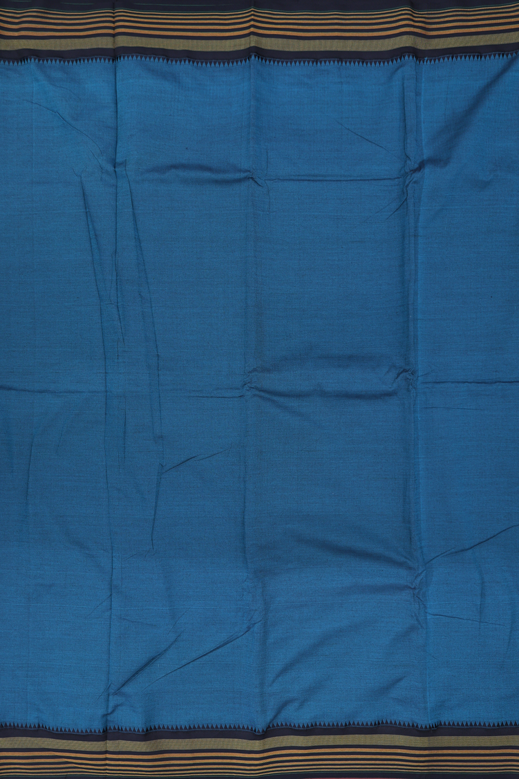 Dharwad Cotton Saree In Teal Blue With Contrast Border