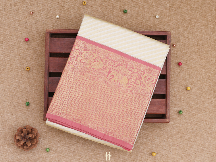 Diagonal Design Beige Kanchipuram Pavadai Sattai Material