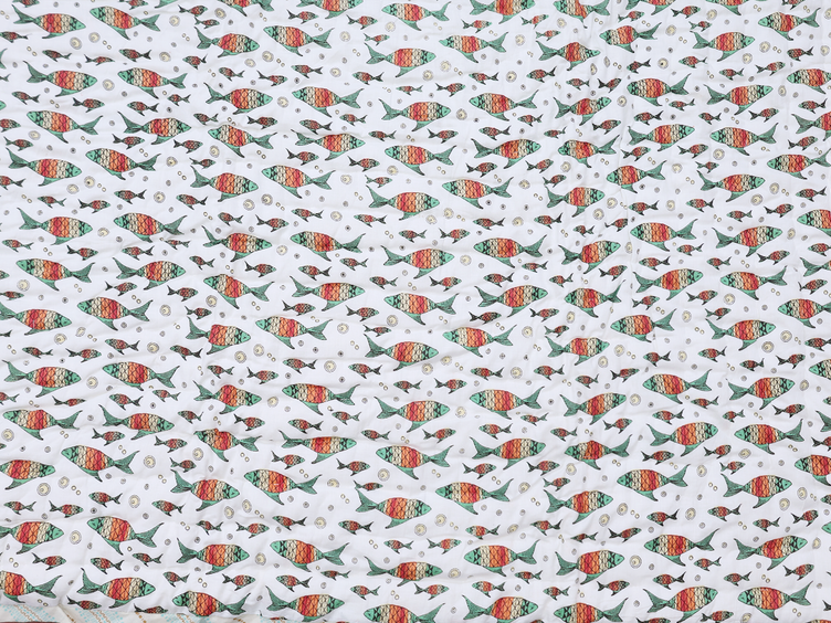 Fish Printed Design White Cotton Single Kids Bedspread