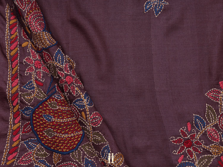 Embroidered Design Plum Brown Tussar Silk Blouse Material