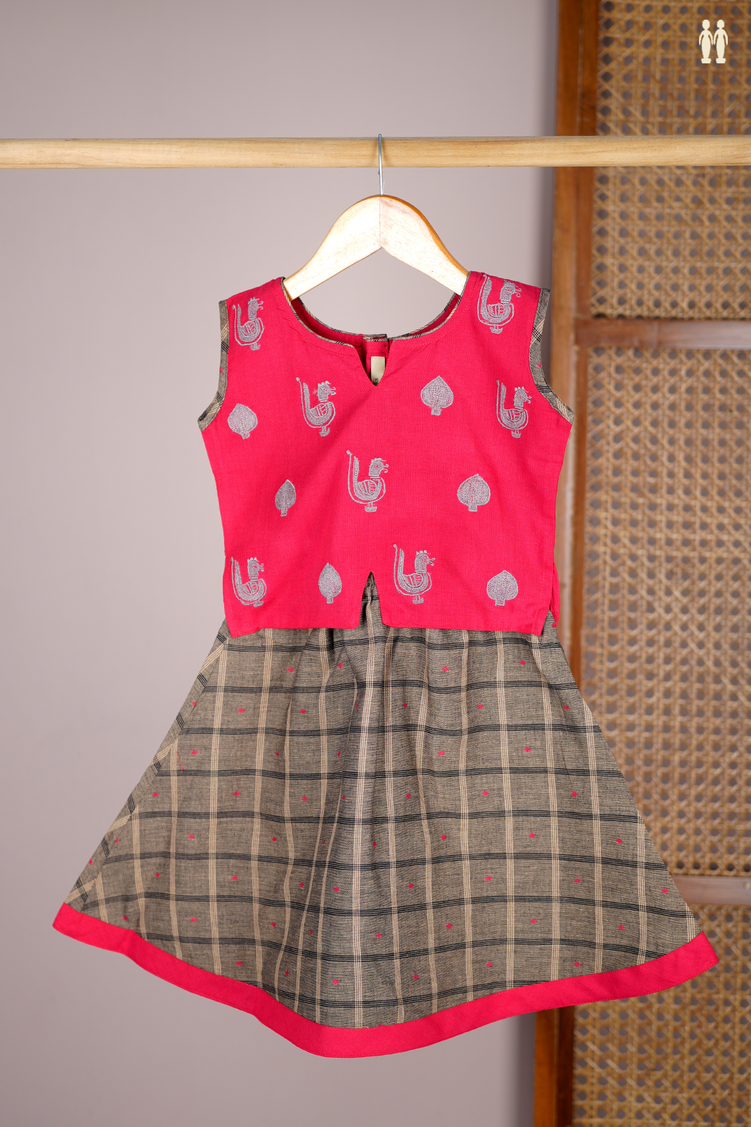 Embroidered Design Red And Brown Readymade Pavadai Sattai