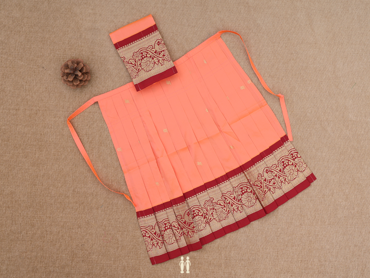 Floral Buttas Orange Silk Cotton Amman Pavadai Set