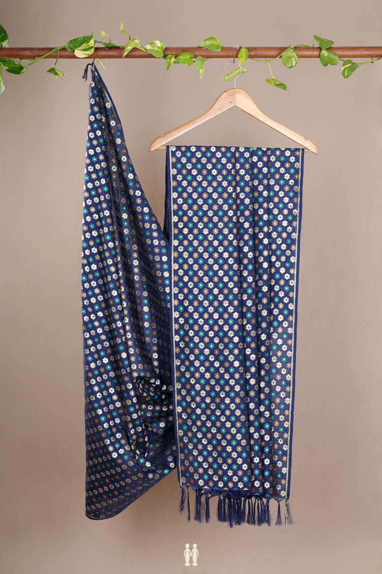 Indulge in luxury with our floral buttas navy blue banarasi dupatta. The intricate floral butta design adds a touch of elegance to any outfit, while the rich navy blue color exudes sophistication. Made from premium banarasi fabric, this dupatta is a must-have for those who appreciate refined style.