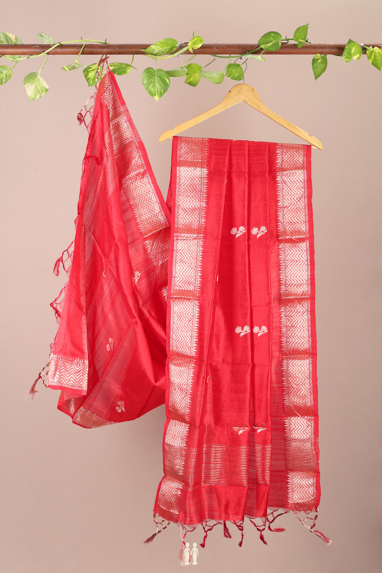 Floral Buttas Scarlet Red Raw Silk Dupatta