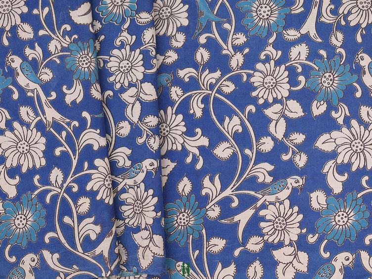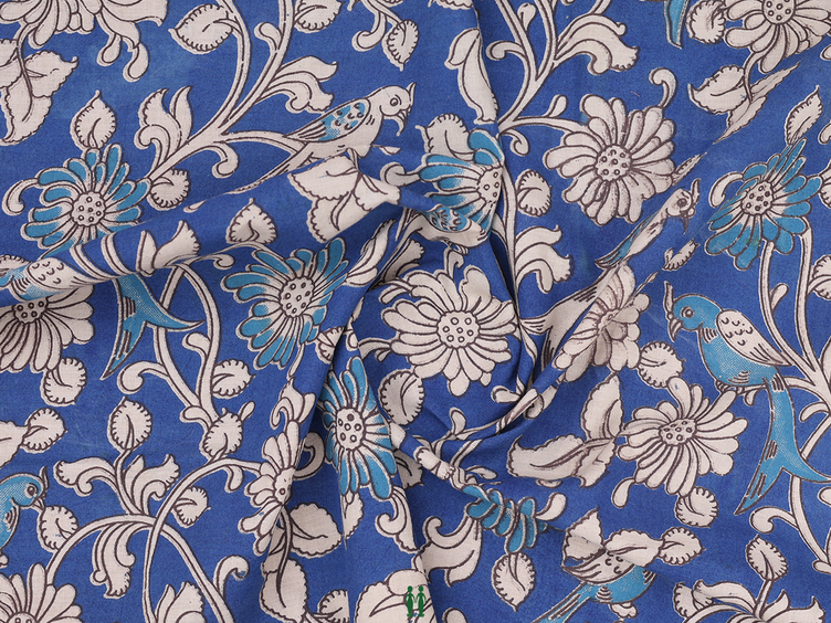 Floral Design Capri Blue Kalamkari Cotton Blouse Material