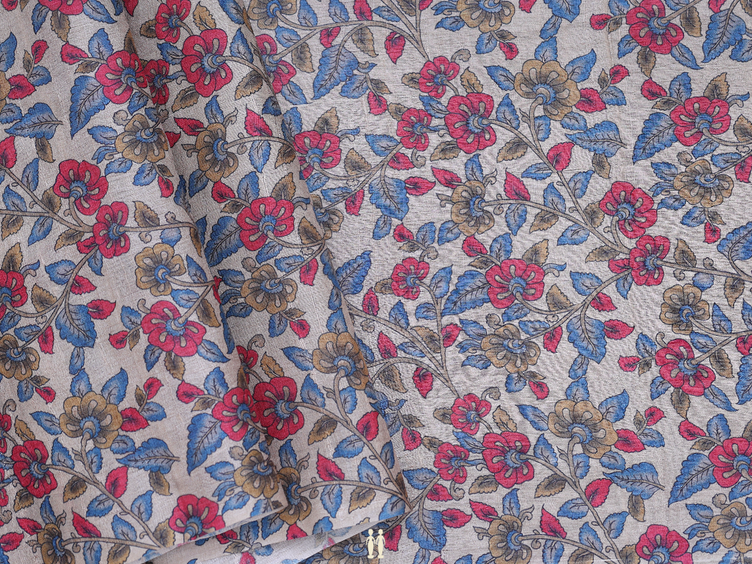 Floral Design Cream Tussar Silk Blouse Material