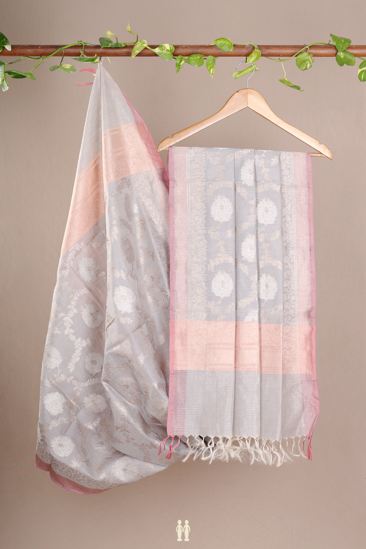 Indulge in luxury with our floral design light grey banarasi dupatta. Expertly crafted with a delicate floral design, this dupatta exudes sophistication and elegance. Perfect for adding a touch of refinement to any outfit, it's the ultimate accessory for those who appreciate the finer things in life.