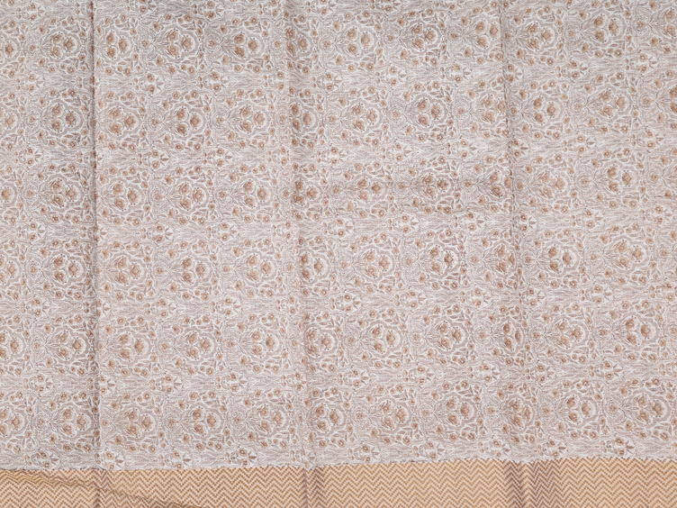 Floral Design Off White Chanderi Unstitched Salwar Material