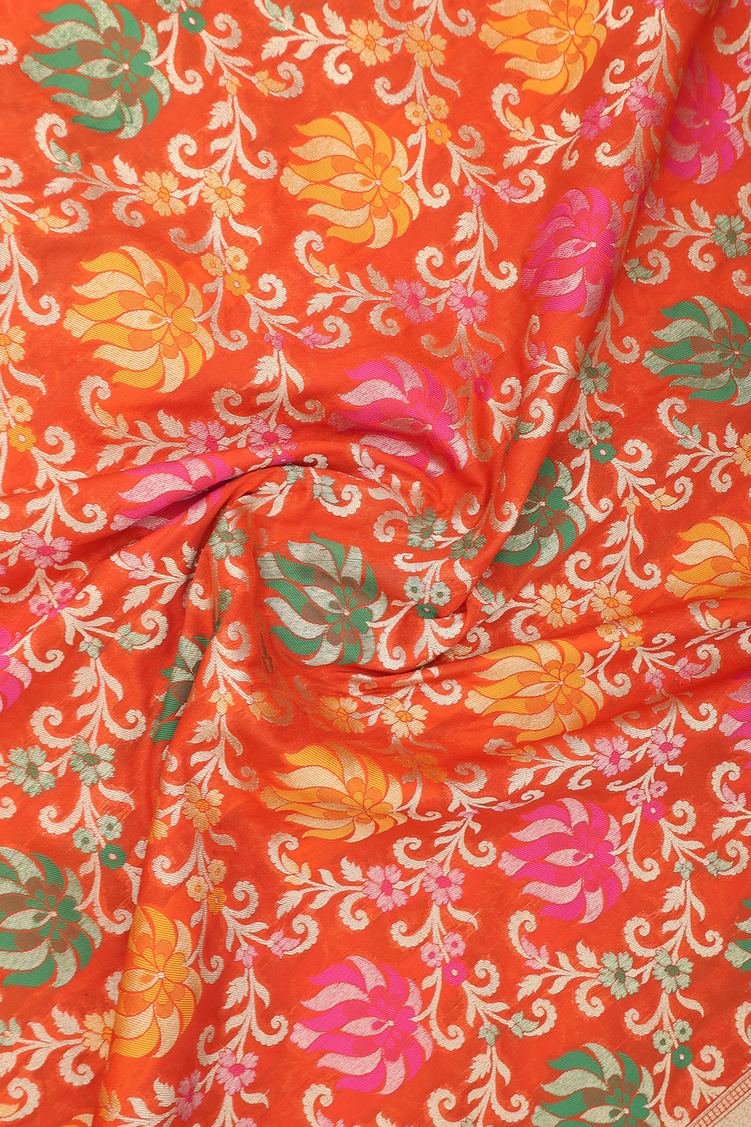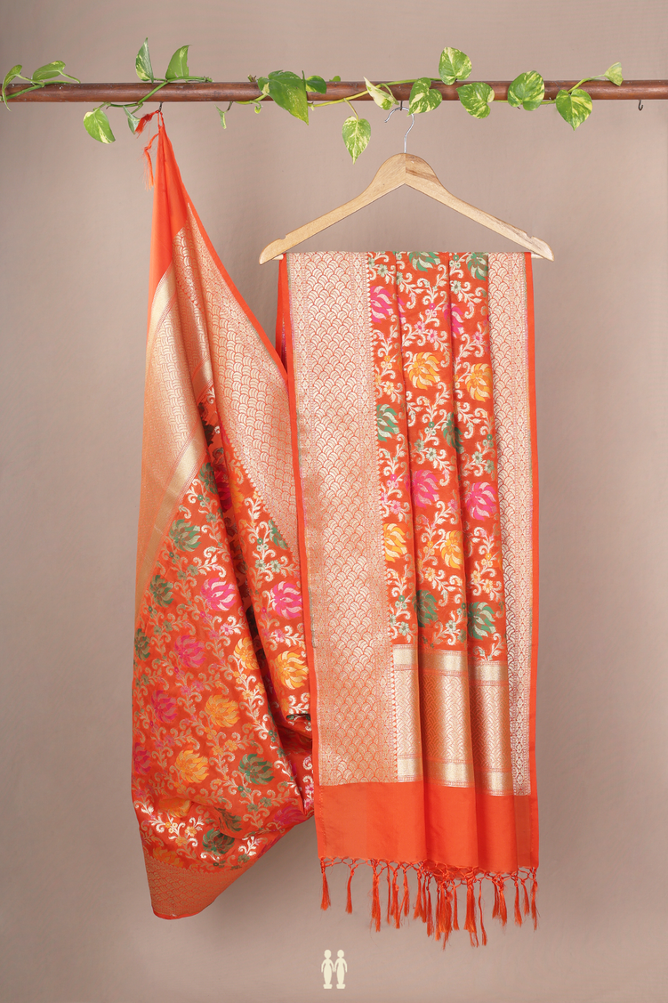 Floral Design Orange Banarasi Silk Dupatta