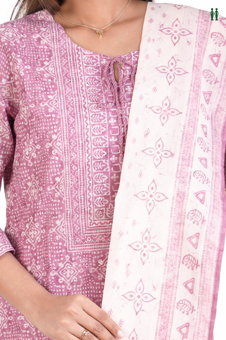 Front Tie Up Printed Design Pink Cotton Salwar Set