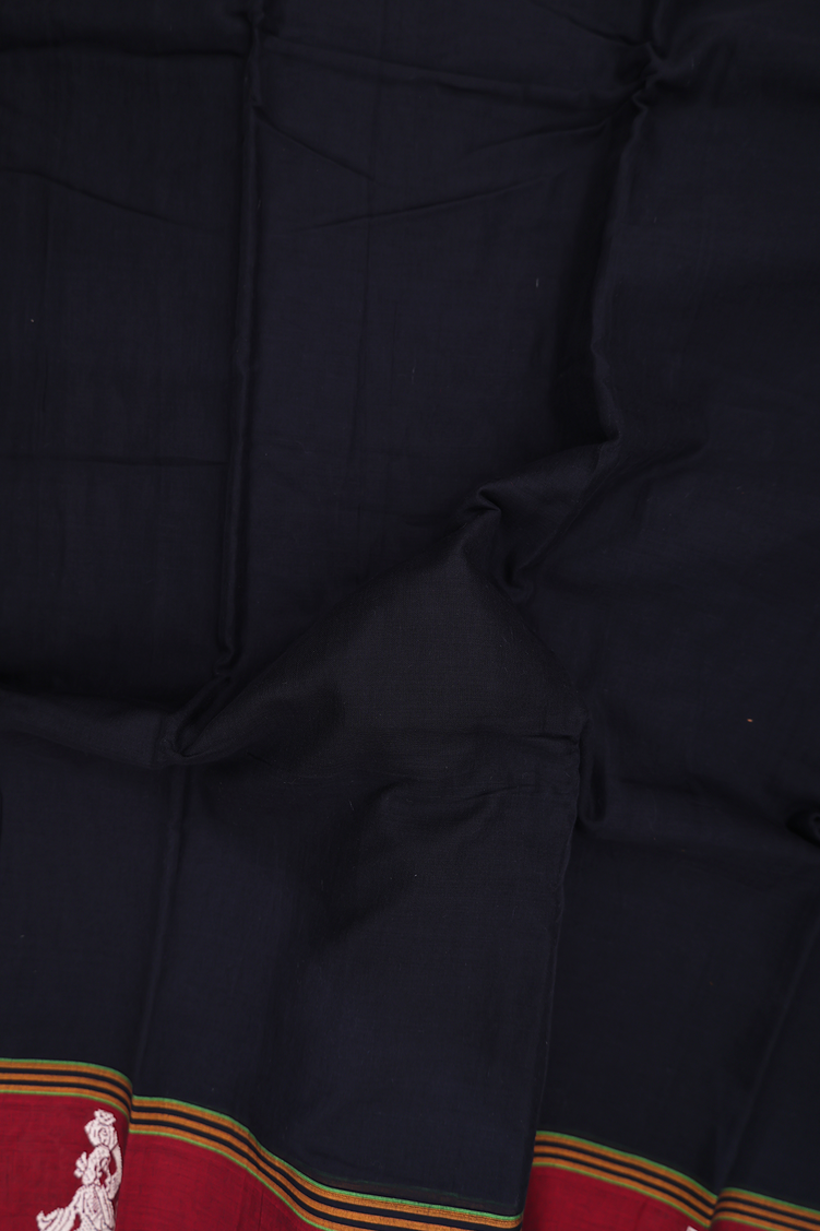 Narayanpet Cotton Saree In Black With Contrast Border