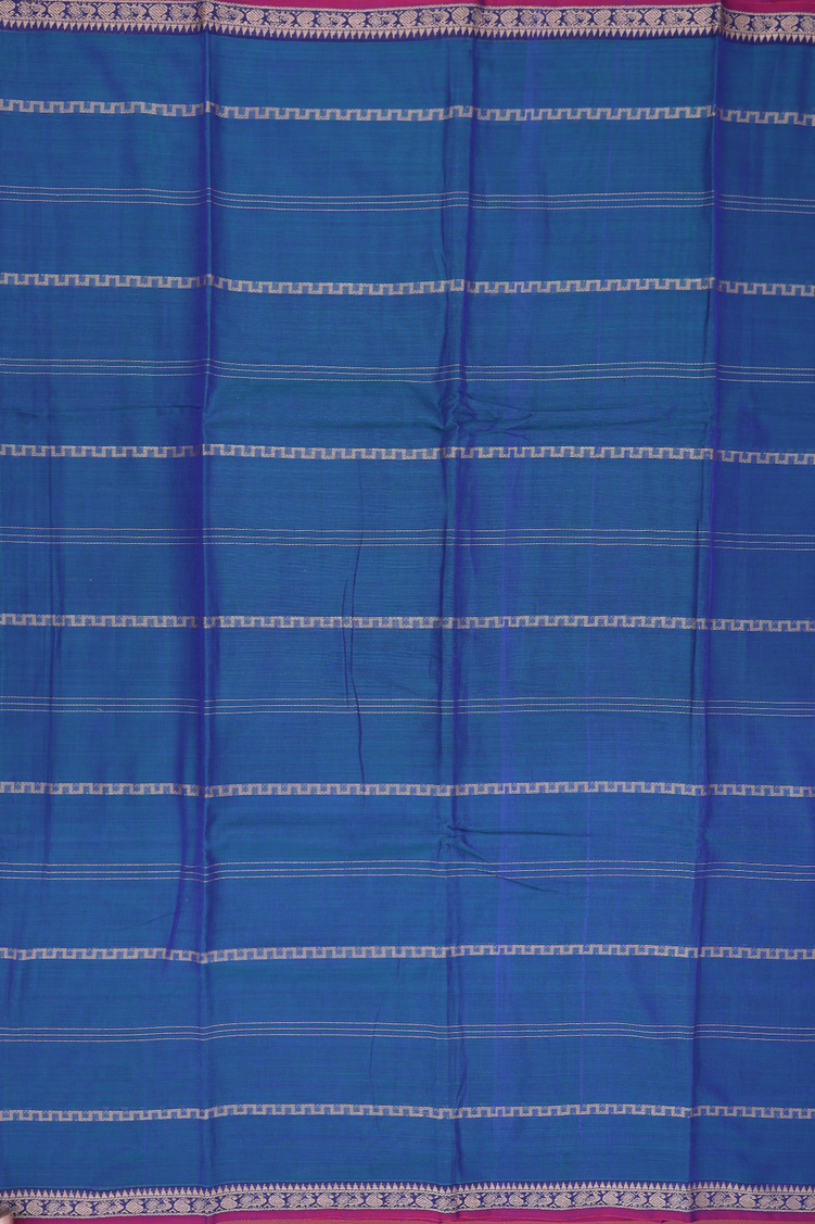 Gadwal Cotton Saree In Prussian Blue With Stripes Design