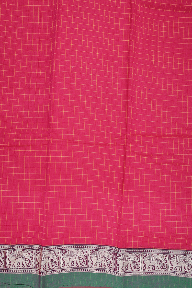 Gadwal Cotton Saree In Rose Red With Checks Design