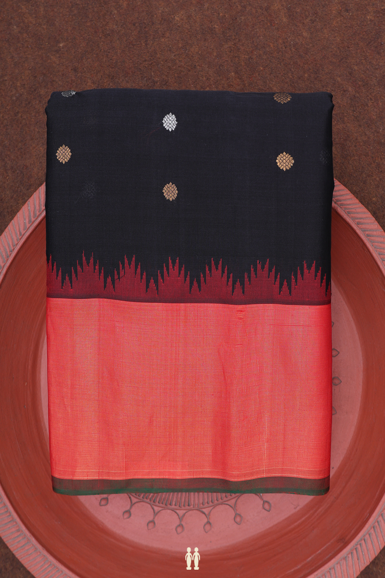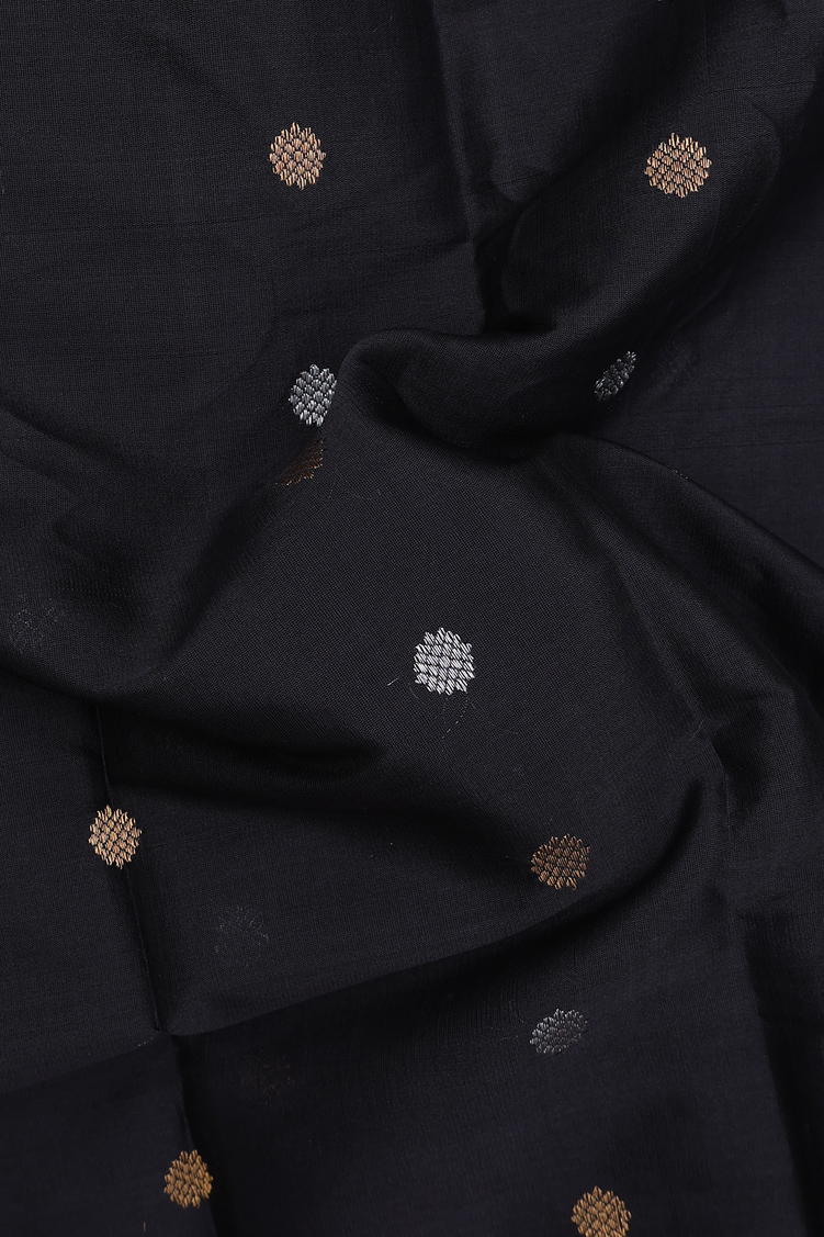 Gadwal Silk Cotton Saree In Black With Zari Buttas