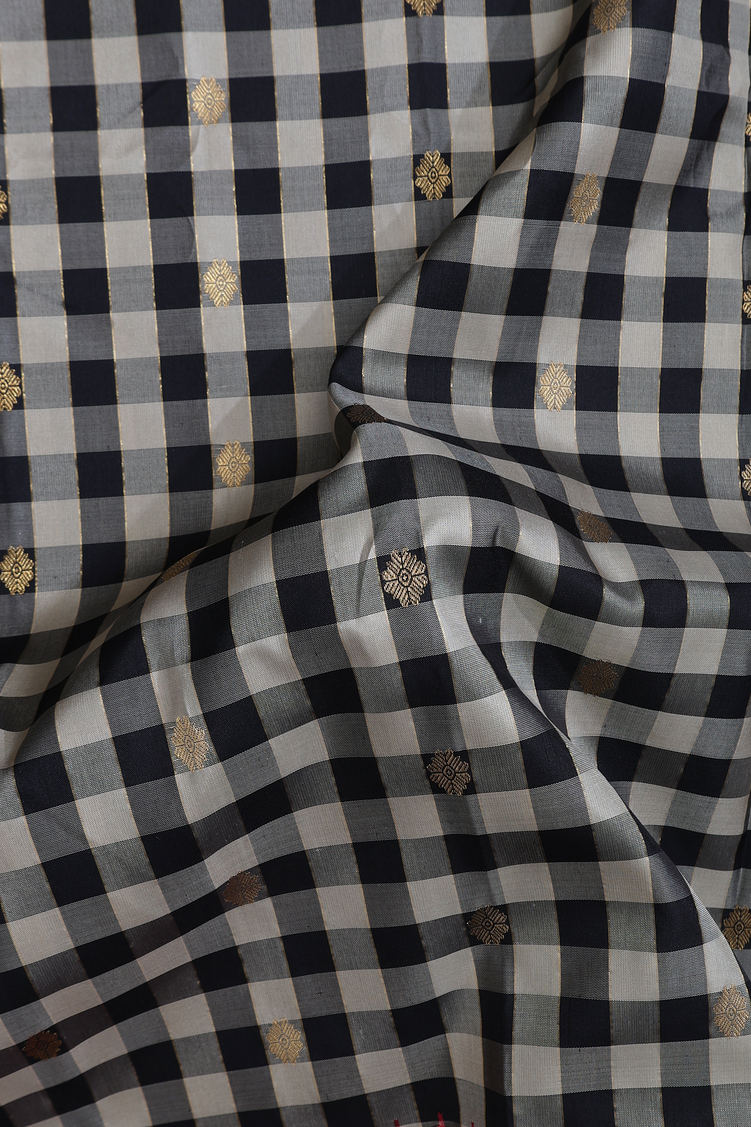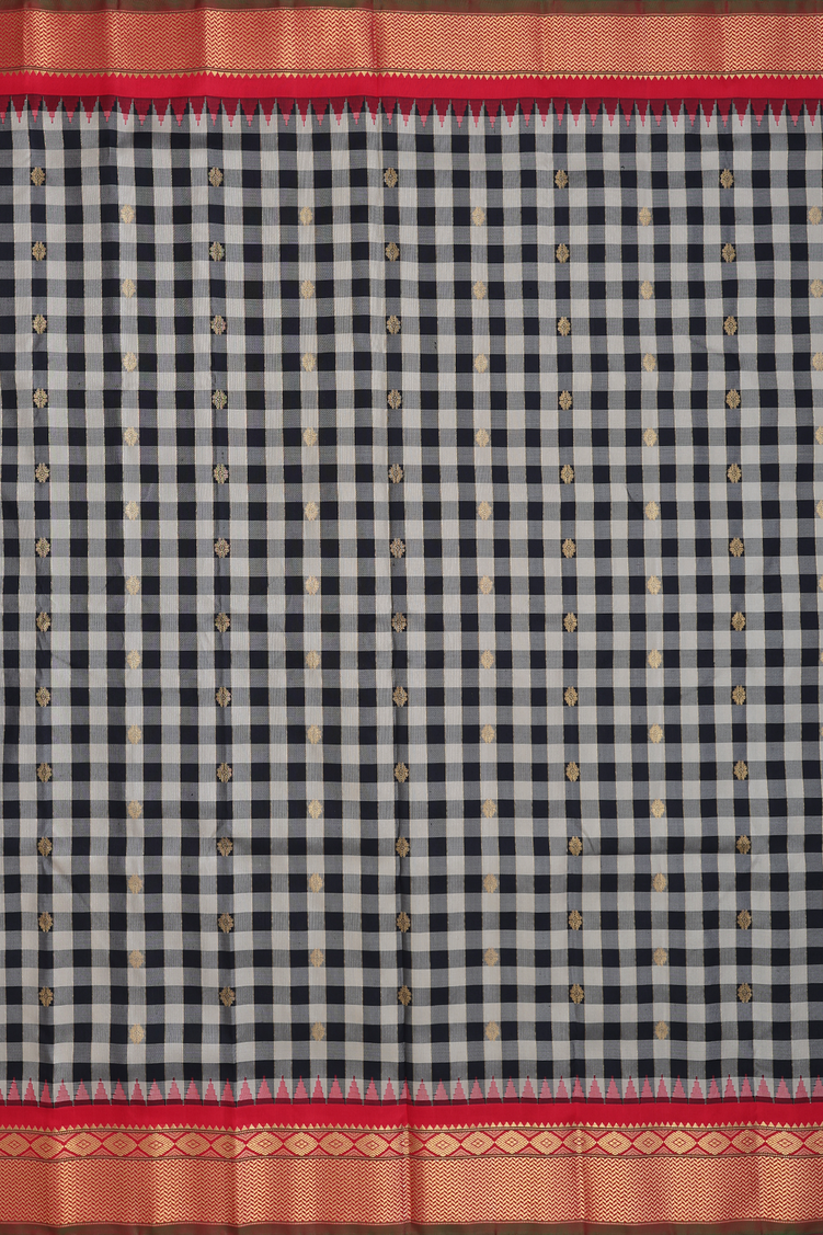Gadwal Silk Saree In Beige And Black With Checks Design