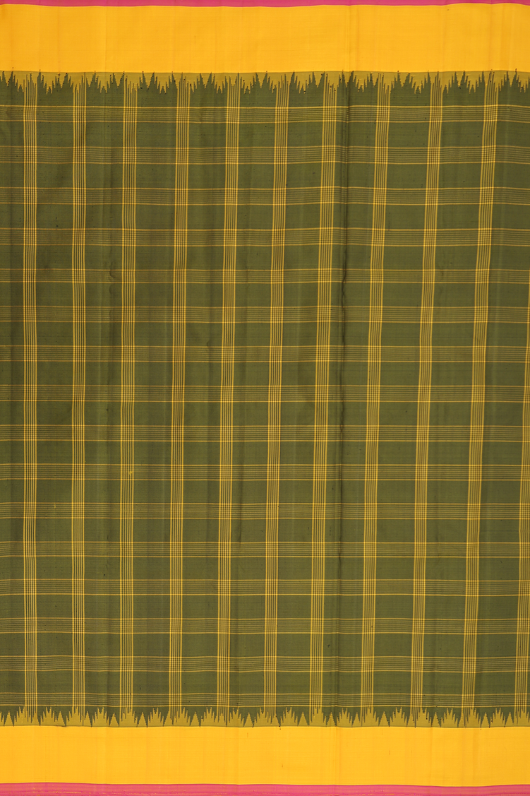 Gadwal Silk Saree In Mehendi Green With Checks Design
