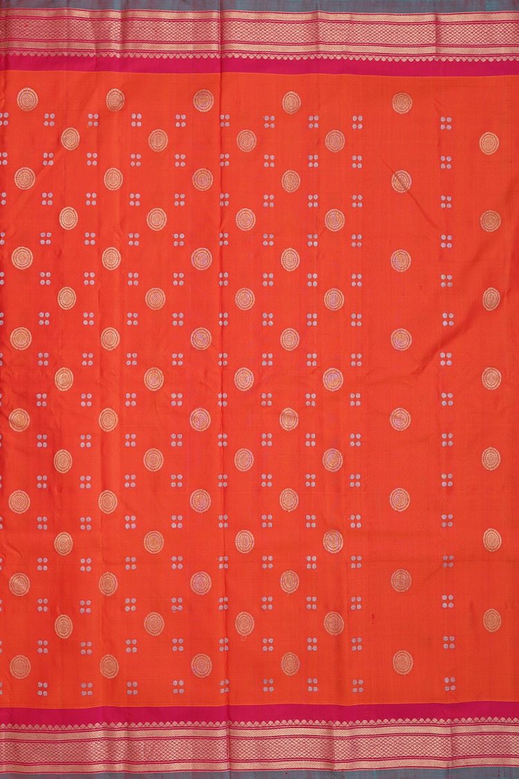 Gadwal Silk Saree In Orange With Chakram Buttas