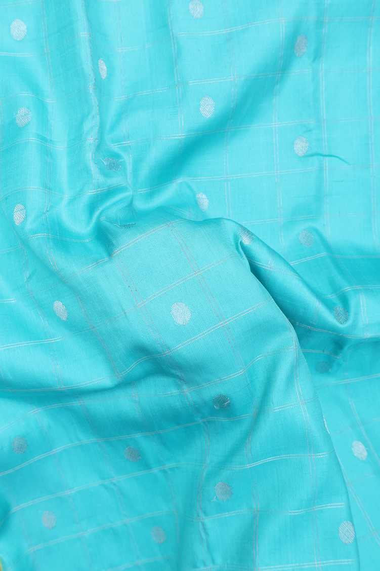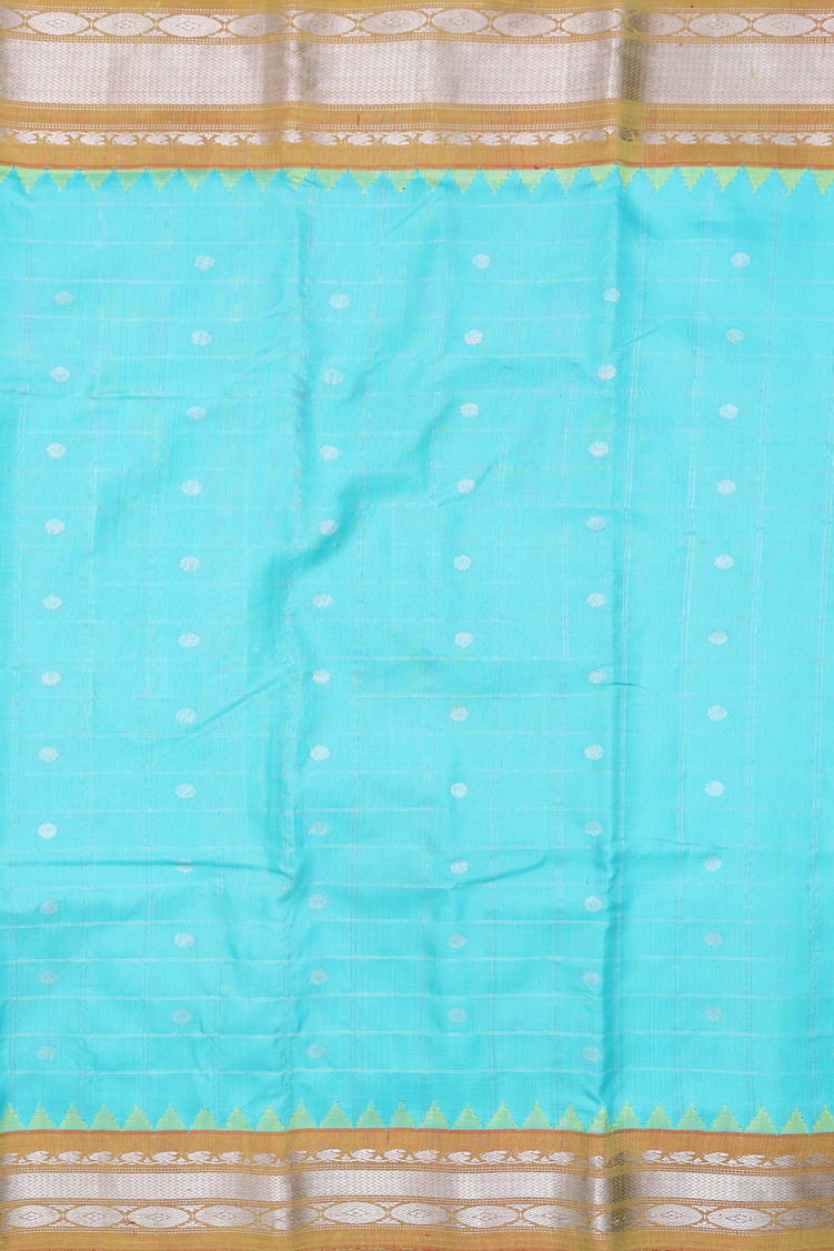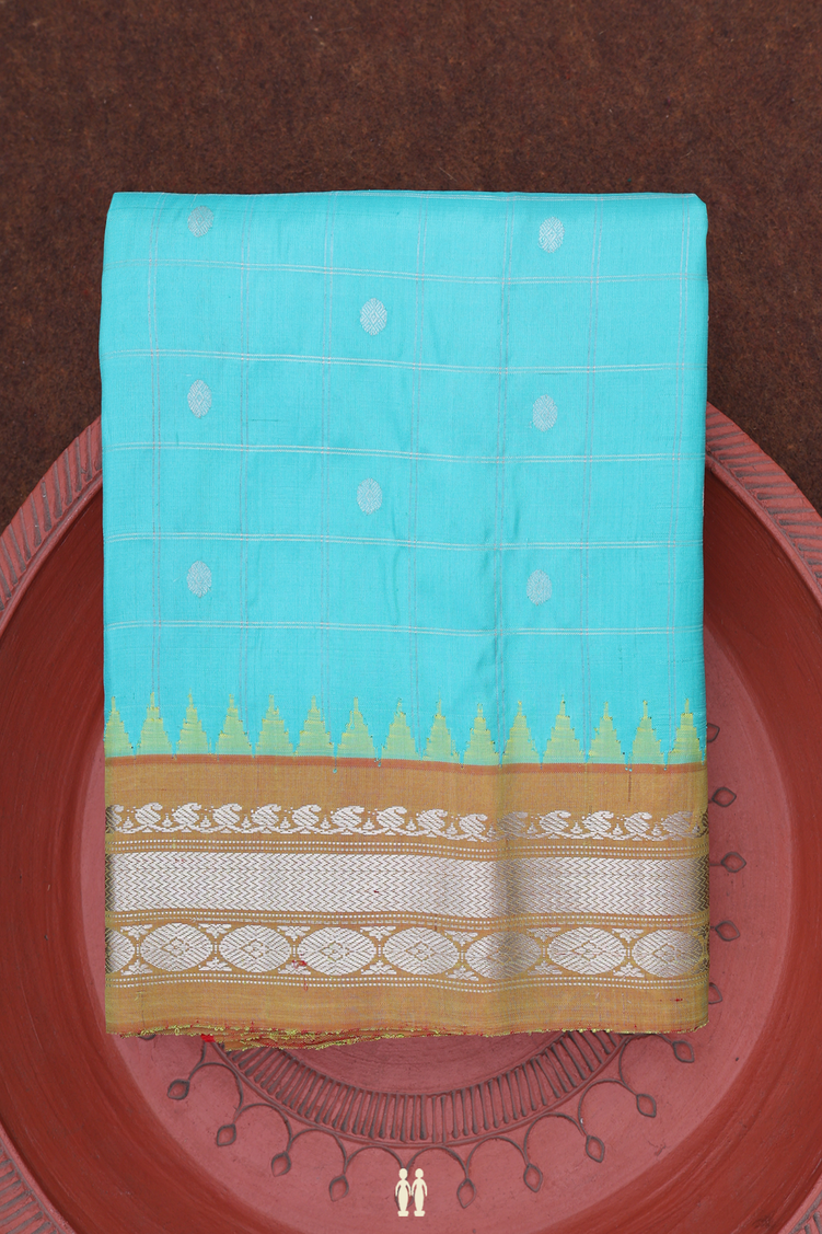 Gadwal Silk Saree In Turquoise Green With Checks Design