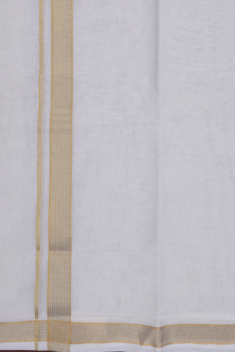 Elevate traditional elegance with this white cotton dhoti featuring a refined zari border. Crafted for comfort and style, its breathable cotton fabric ensures ease in warm climates, while the intricate zari detailing adds a touch of sophistication suitable for ceremonial occasions. Ideal for those who appreciate timeless cultural attire with a subtle, graceful finish.