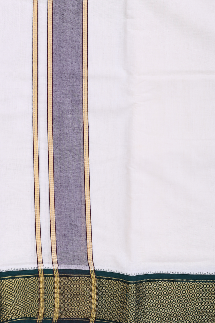 Ganga Jamuna Border White Cotton Dhoti With Angavastram Set