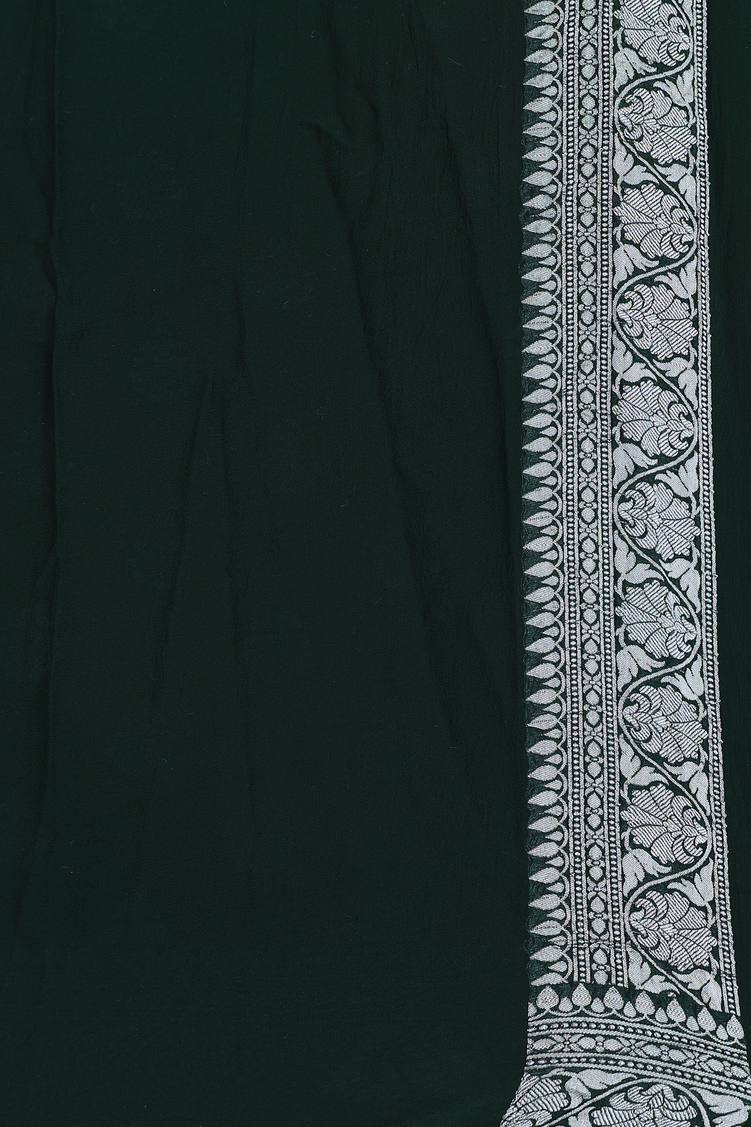Elevate your ethnic wardrobe with this exquisite georgette banarasi silk saree, a masterpiece of traditional craftsmanship. Rendered in a rich bottle green hue, this saree features delicate floral buttas that dance across the fabric, creating an understated yet captivating visual appeal. The lightweight georgette construction ensures effortless draping and all-day comfort, while the authentic Banarasi silk weaving technique adds timeless elegance. Perfect for festive occasions, celebrations, or refined everyday wear, this saree seamlessly blends heritage artistry with contemporary sophistication. An investment piece that transcends seasons and trends.