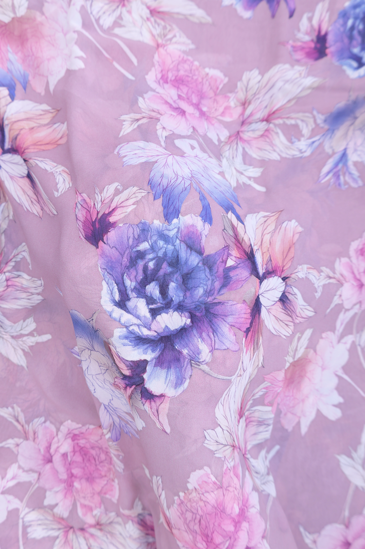 Georgette Saree In Dusty Purple With Floral Printed Design