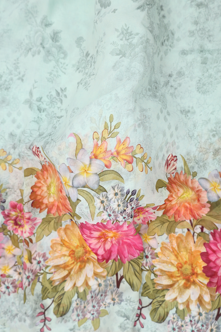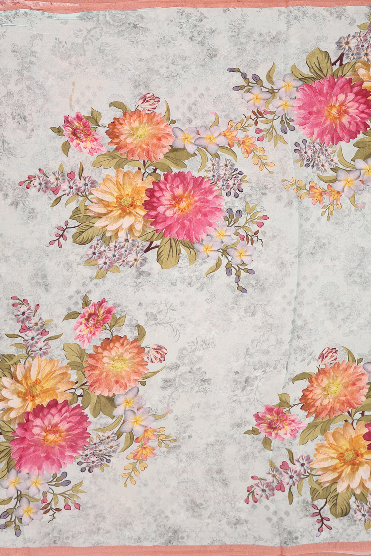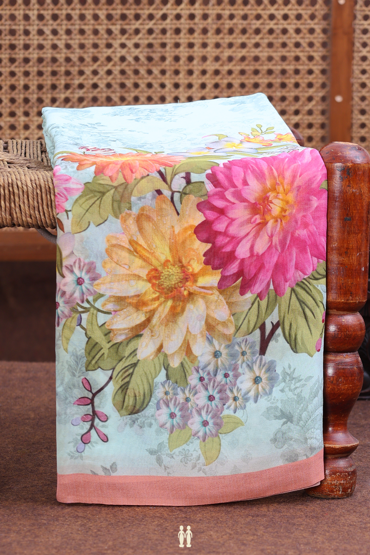 Georgette Saree In Pastel Blue With Floral Design
