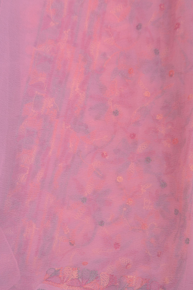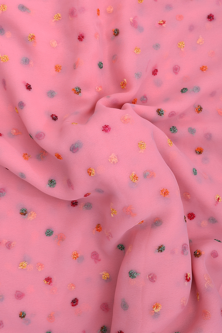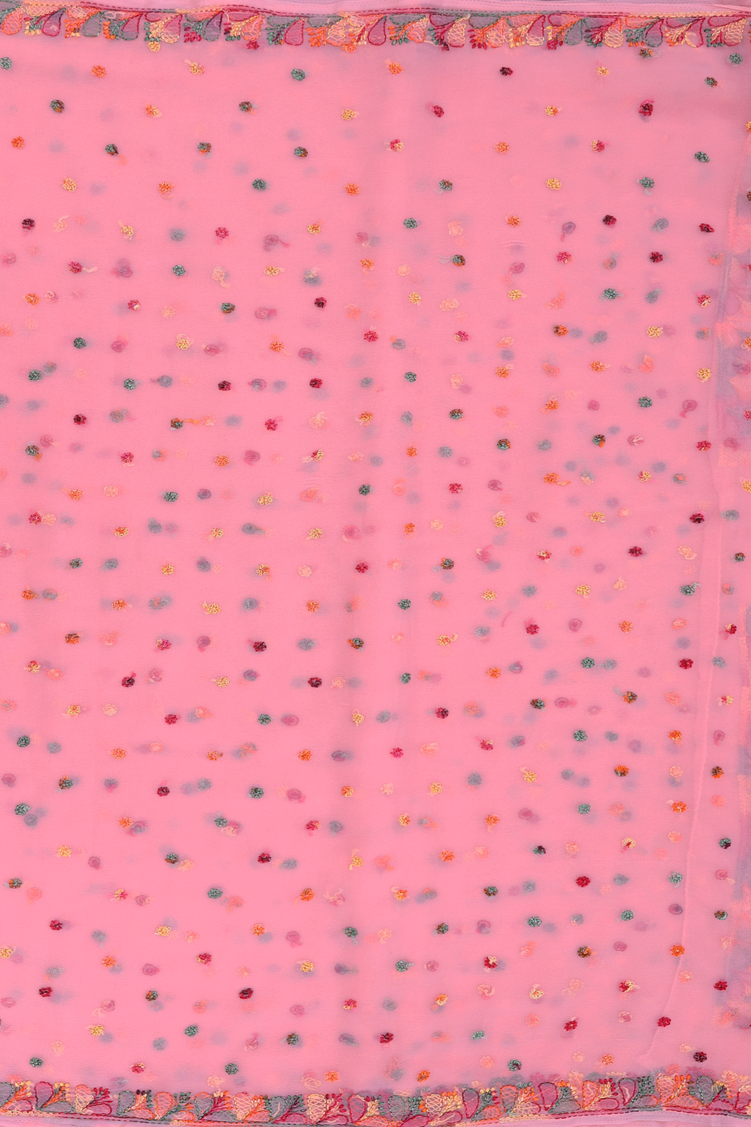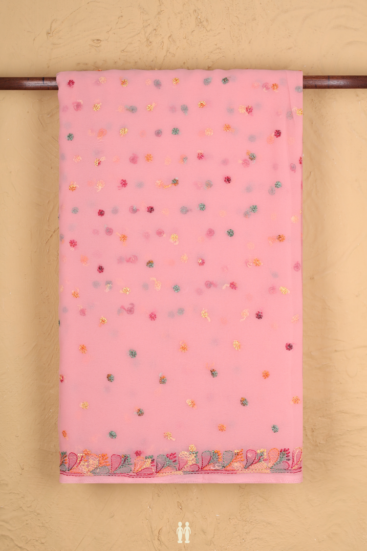 Georgette Saree In Peach Pink With Threadwork Buttas
