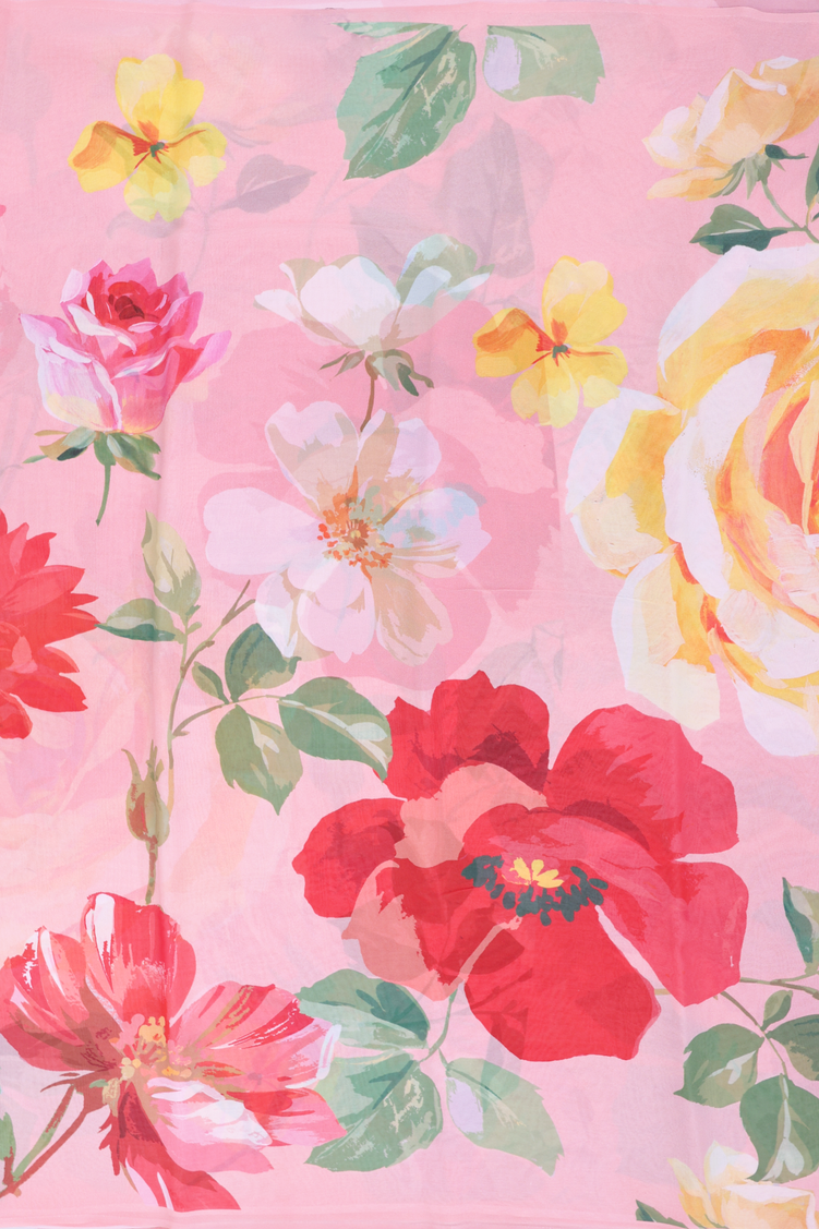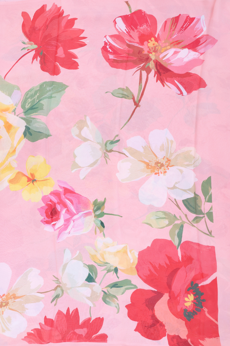Georgette Saree In Pinkish Peach With Floral Printed Design