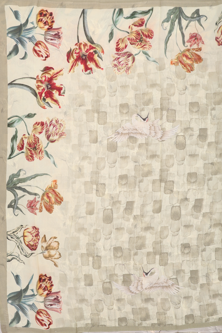 Georgette Saree In Green Beige With Printed Design