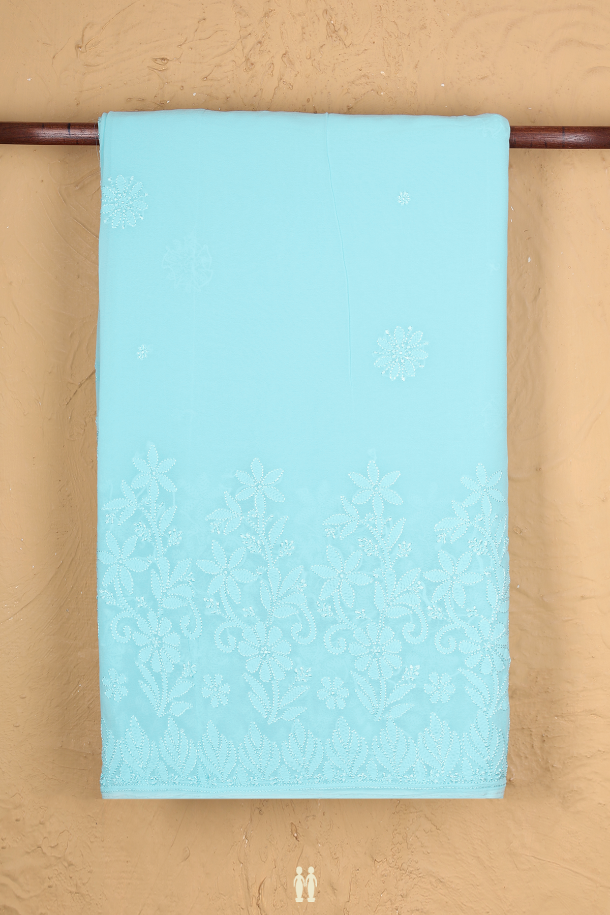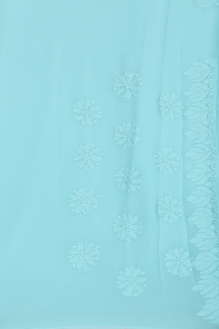 Drape yourself in timeless elegance with this exquisite sky blue georgette saree. The lightweight, fluid fabric offers effortless grace and comfort for all-day wear, while intricate embroidered detailing adds a touch of refined sophistication. Perfect for weddings, celebrations, or special occasions, this saree seamlessly blends traditional craftsmanship with contemporary style. The soft, breathable georgette ensures you stay cool and comfortable, while the delicate embroidery work showcases meticulous artistry. An investment piece that transcends seasons and trends, ideal for the discerning woman who appreciates quality and understated luxury.