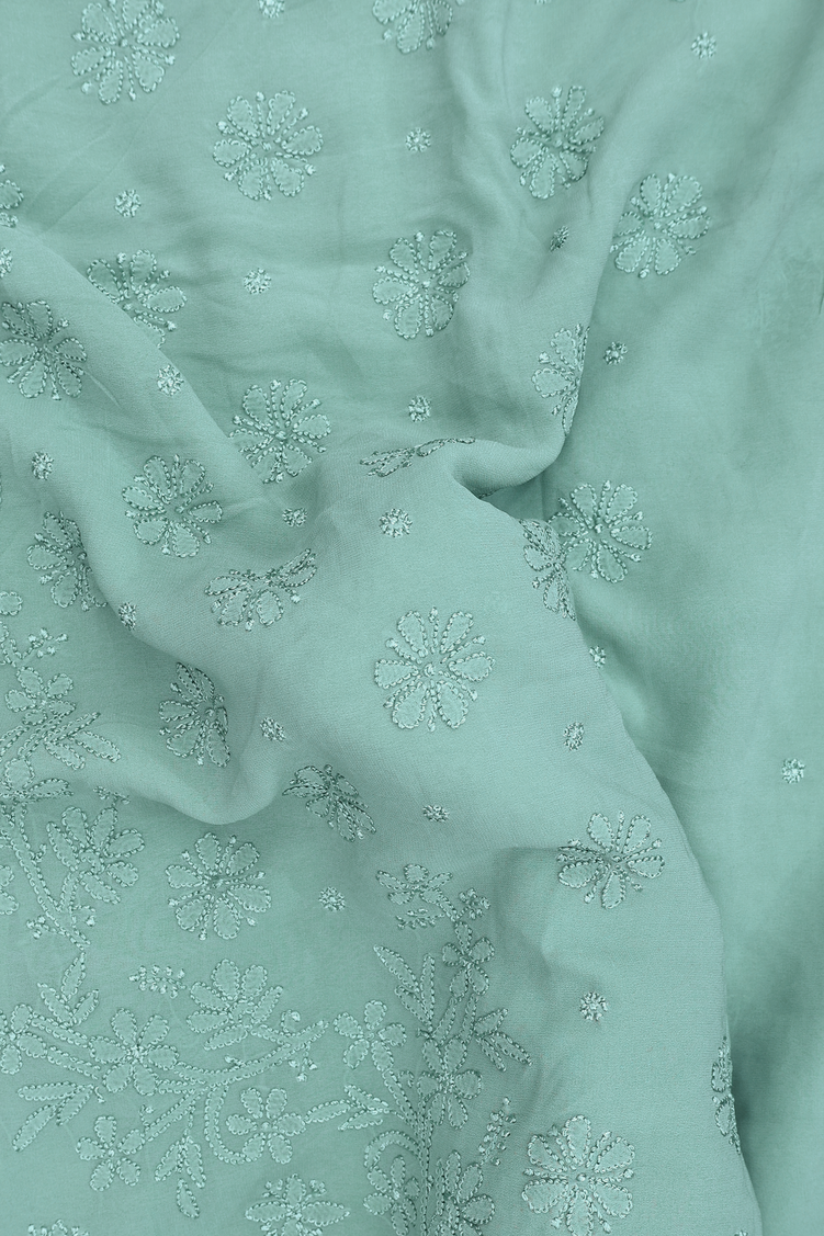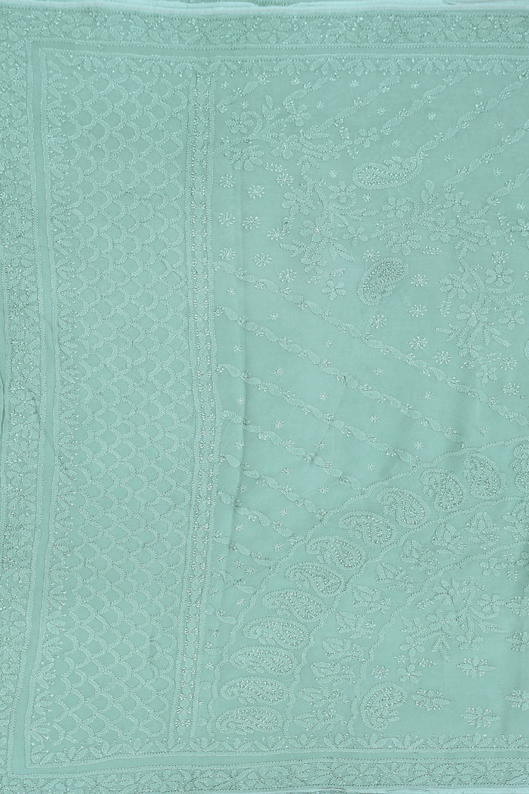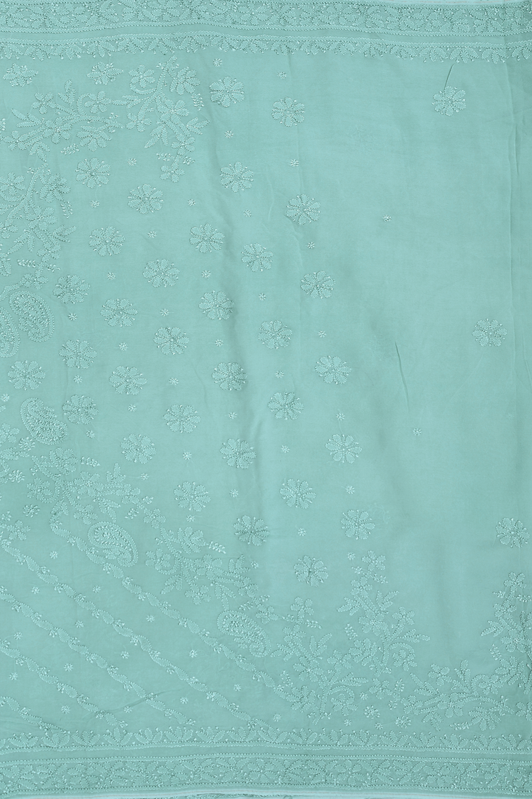 Georgette Saree In Turkish Blue With Embroidered Design