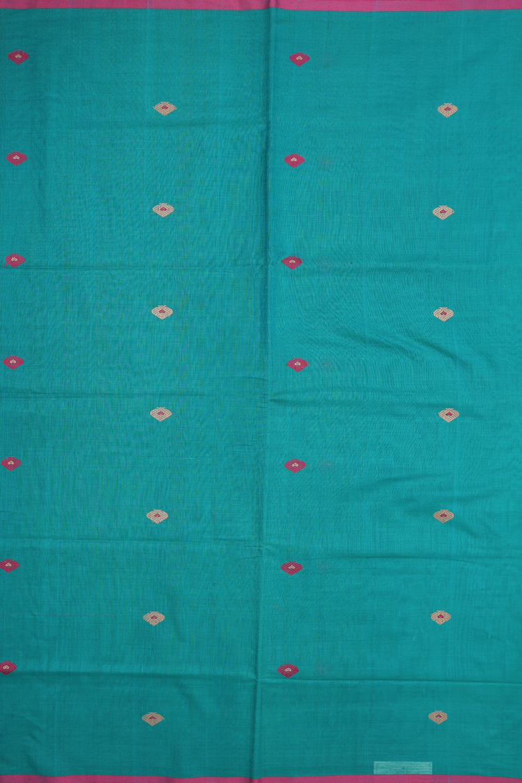 Handloom Cotton Saree In Green With Threadwork Buttas