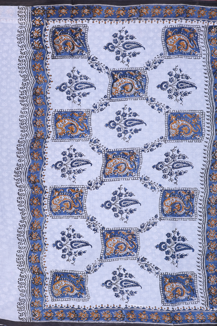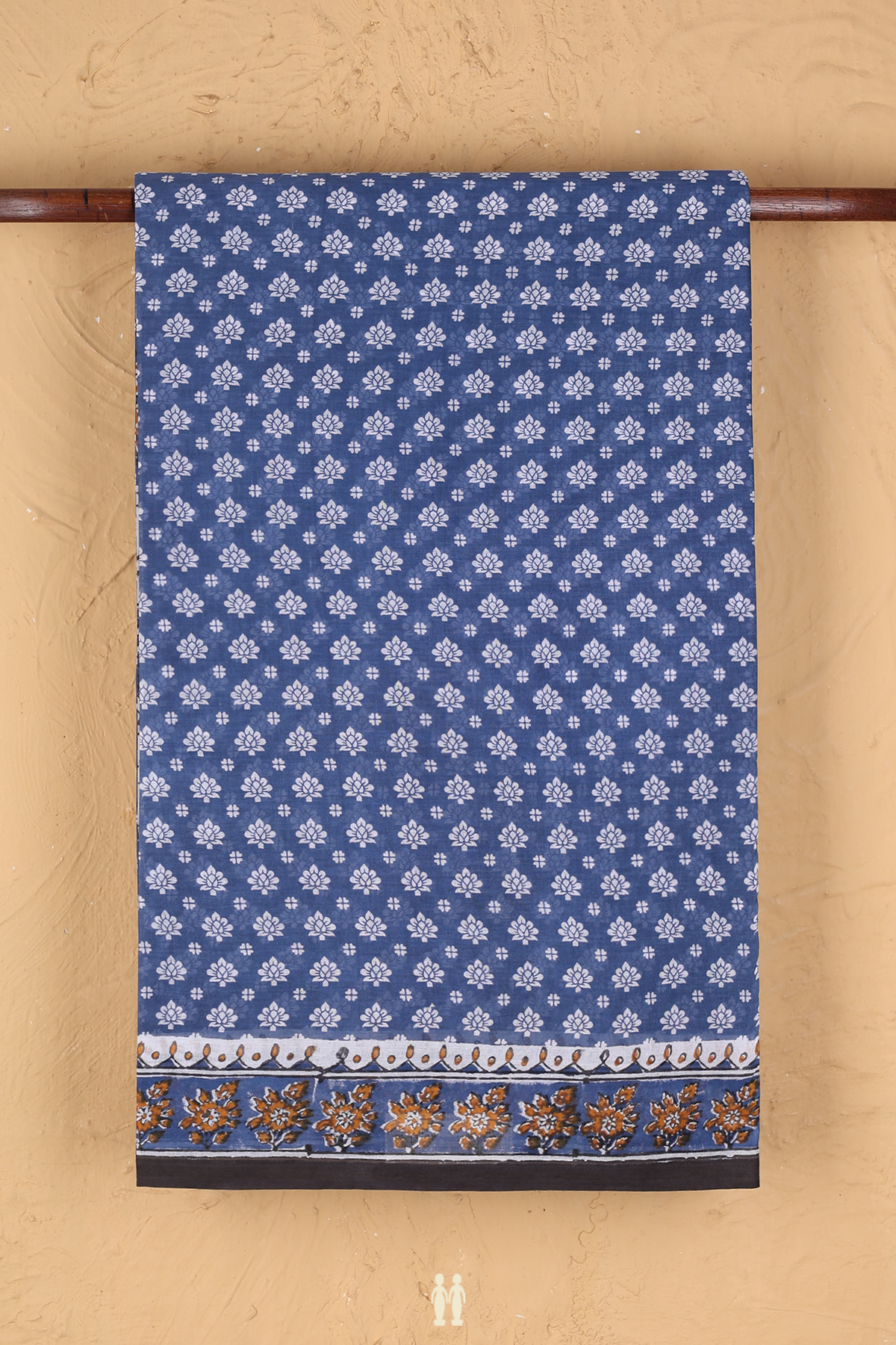 Hyderabad Cotton Saree In Capri Blue With Floral Design
