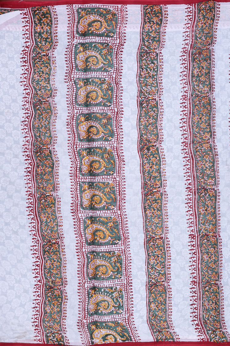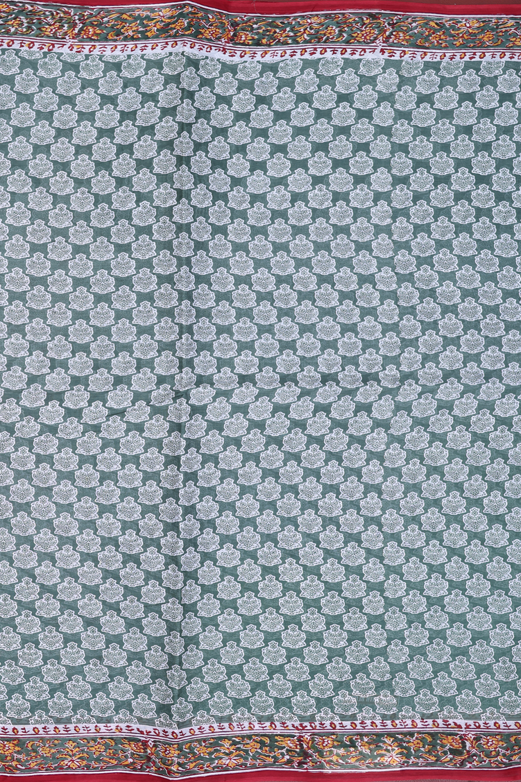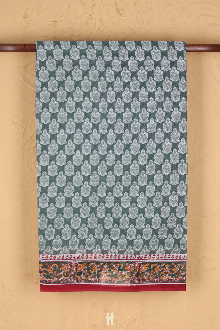 Hyderabad Cotton Saree In Dusty Green With Floral Design