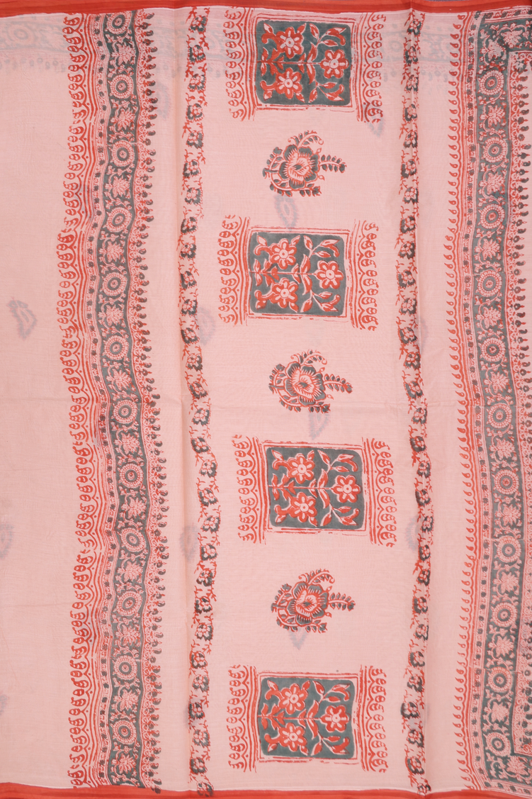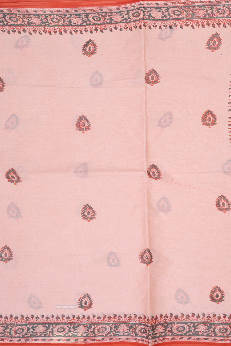 Hyderabad Cotton Saree In Orange With Printed Buttas
