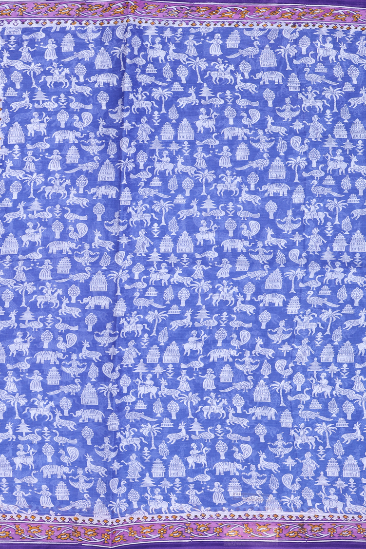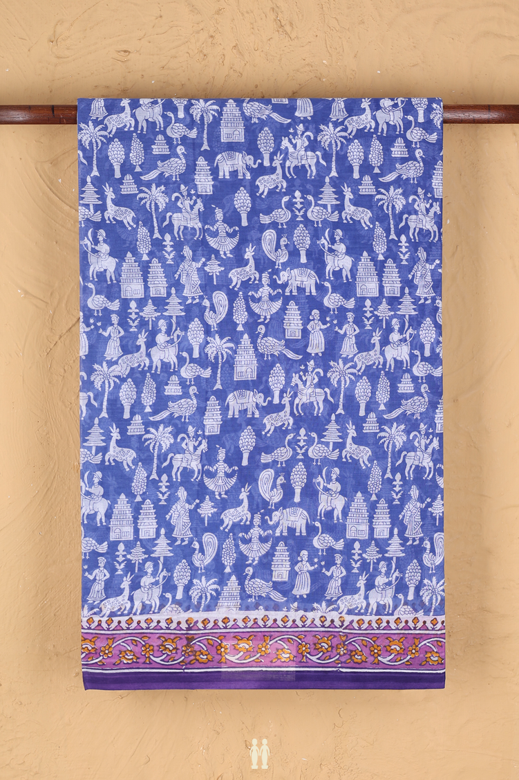 Hyderabad Cotton Saree In Royal Blue With Printed Design