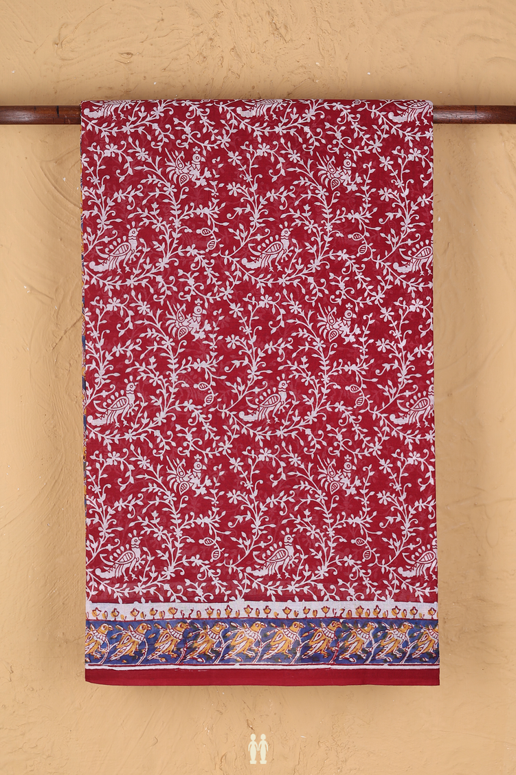 Hyderabad Cotton Saree In Ruby Red With Printed Design