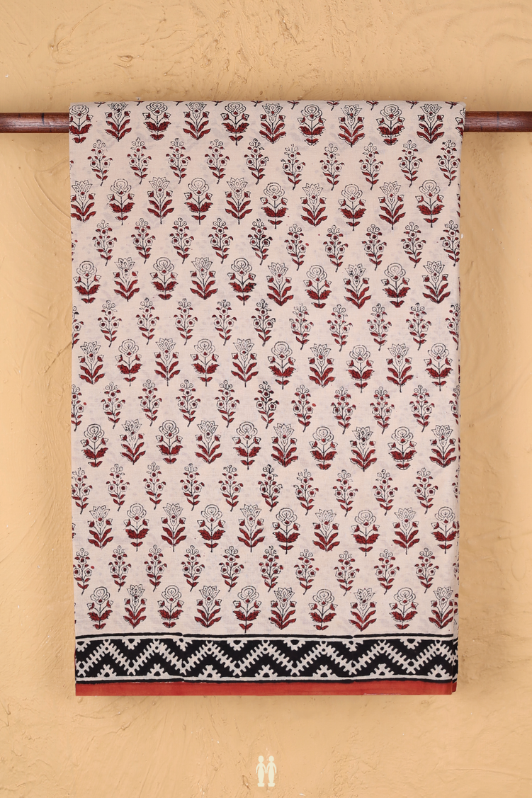Jaipur Cotton Saree In Beige With Floral Printed Design