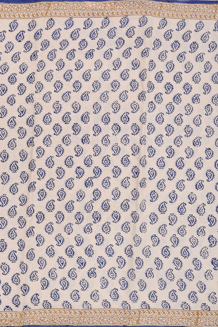 Jaipur Cotton Saree In Beige With Paisley Buttas