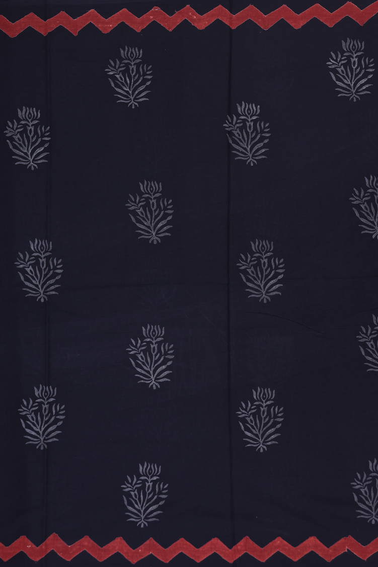Jaipur Cotton Saree In Black With Floral Design