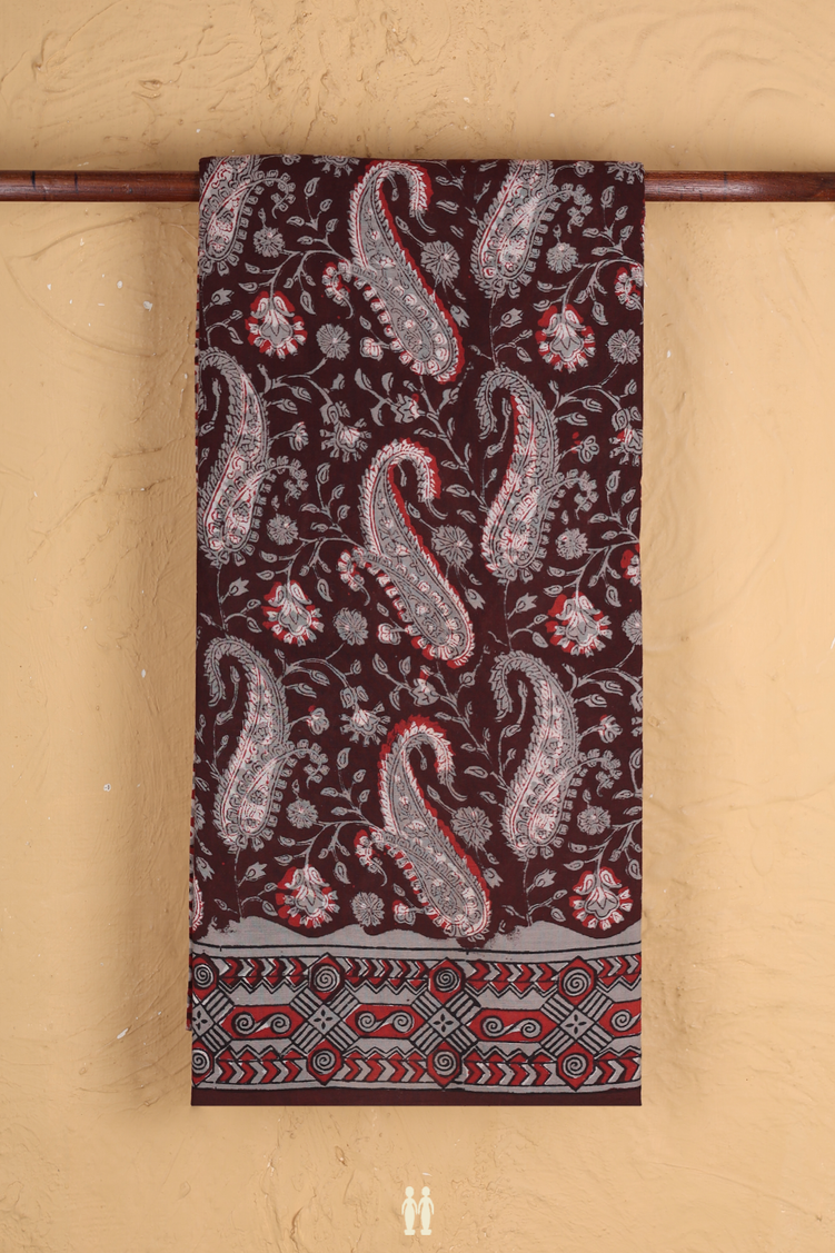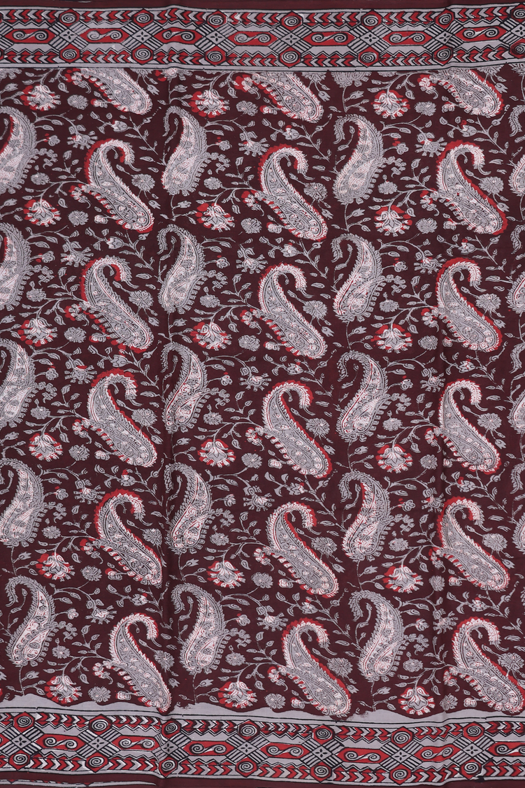Jaipur Cotton Saree In Dark Maroon With Paisley Design