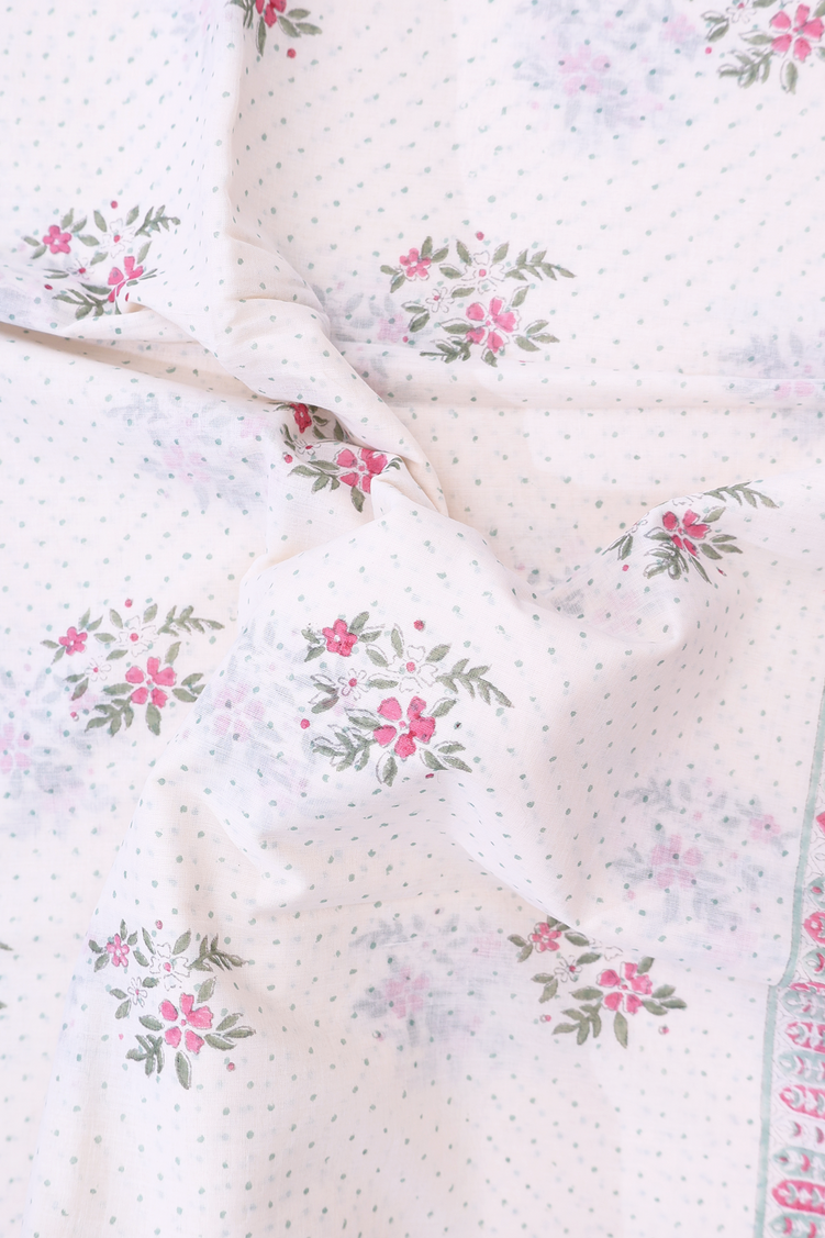 Embrace timeless elegance with this exquisite Jaipur cotton saree, rendered in pristine ivory with an intricate floral printed design. Crafted from breathable cotton, this saree offers comfort without compromising on grace. The delicate floral motifs showcase traditional artistry, making it an ideal choice for festive occasions, celebrations, or refined everyday wear. The soft drape and natural fabric ensure effortless styling, while the classic ivory base pairs beautifully with traditional jewelry and accessories.