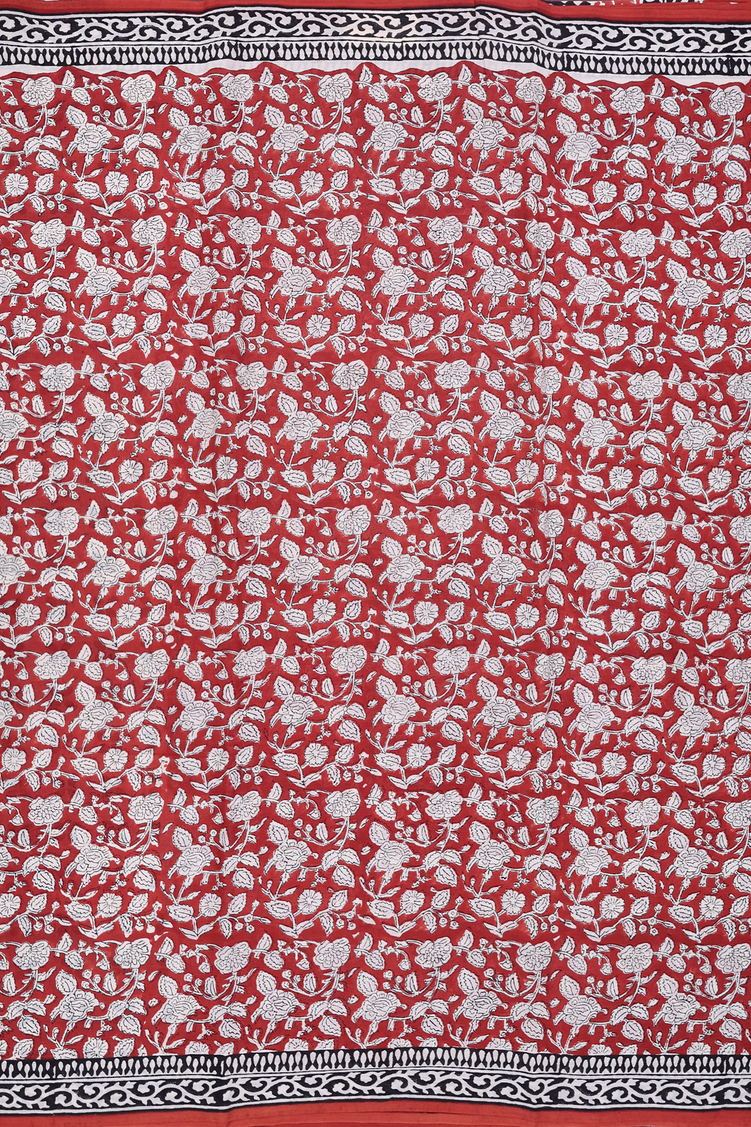 Elevate your wardrobe with this jaipur cotton saree in a rich rust red hue, adorned with a delicate floral design. Crafted from breathable cotton, it offers comfort and elegance, making it perfect for both day and evening occasions. The intricate floral pattern adds a timeless charm, reflecting traditional craftsmanship with a modern touch. Ideal for those who appreciate understated sophistication and a versatile, graceful silhouette.