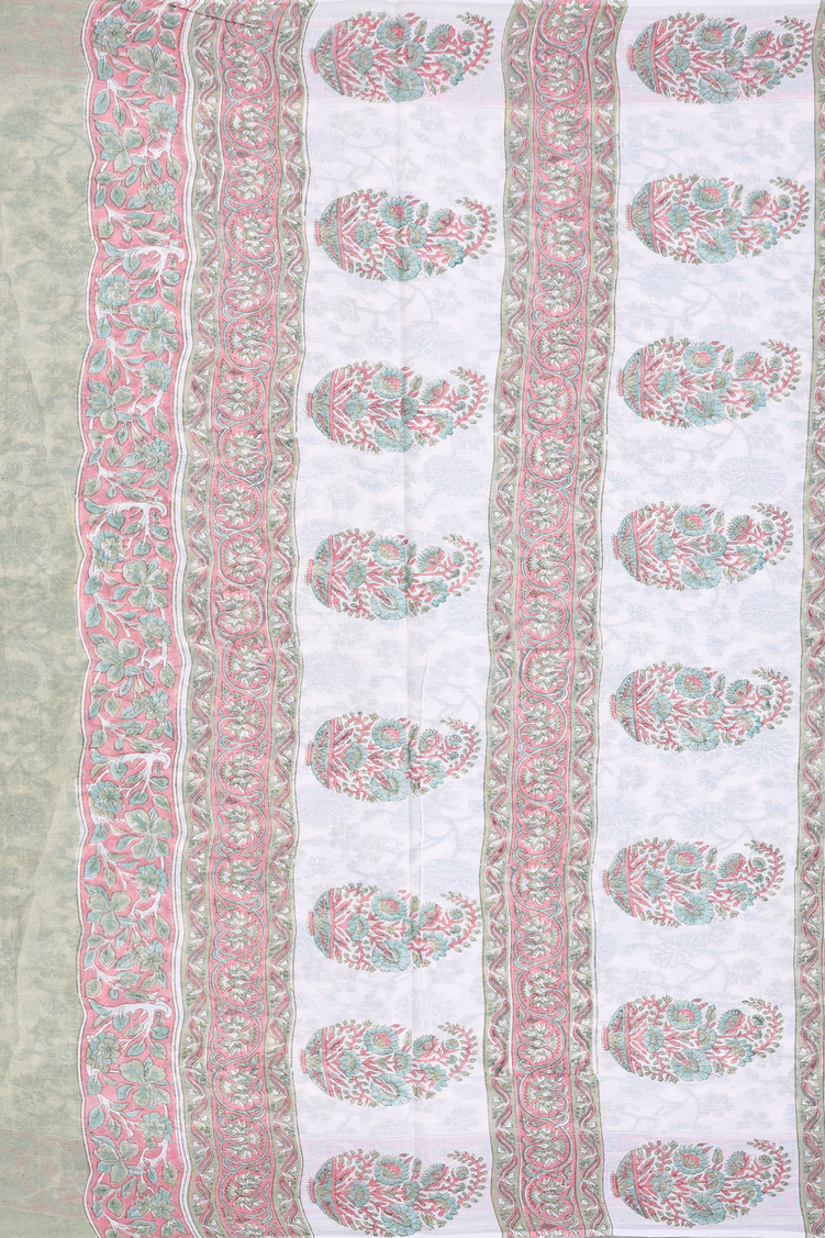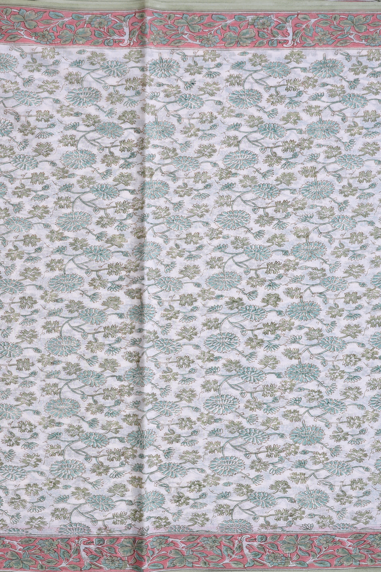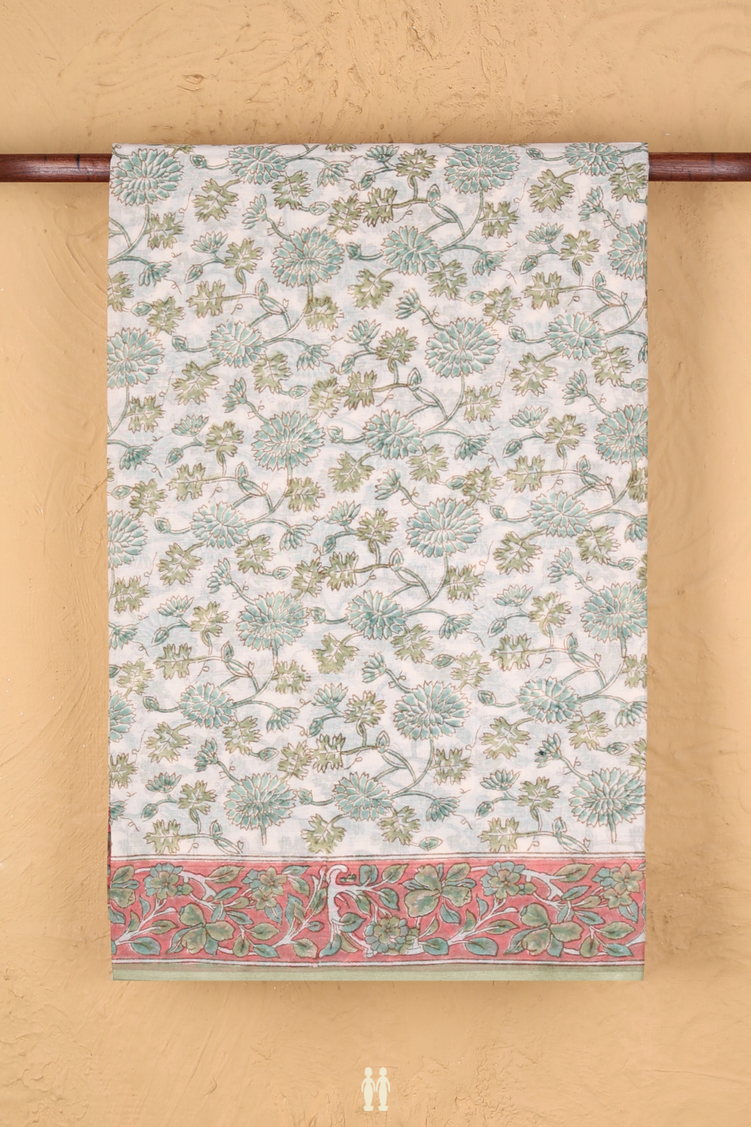Jaipur Cotton Saree In White With Floral Printed Design