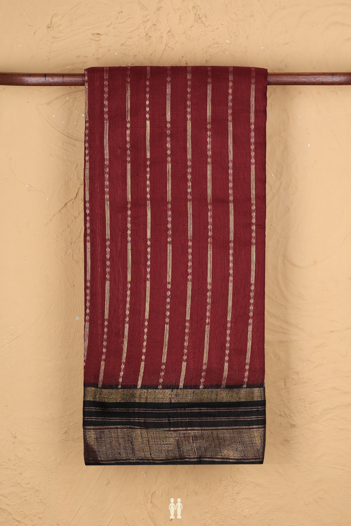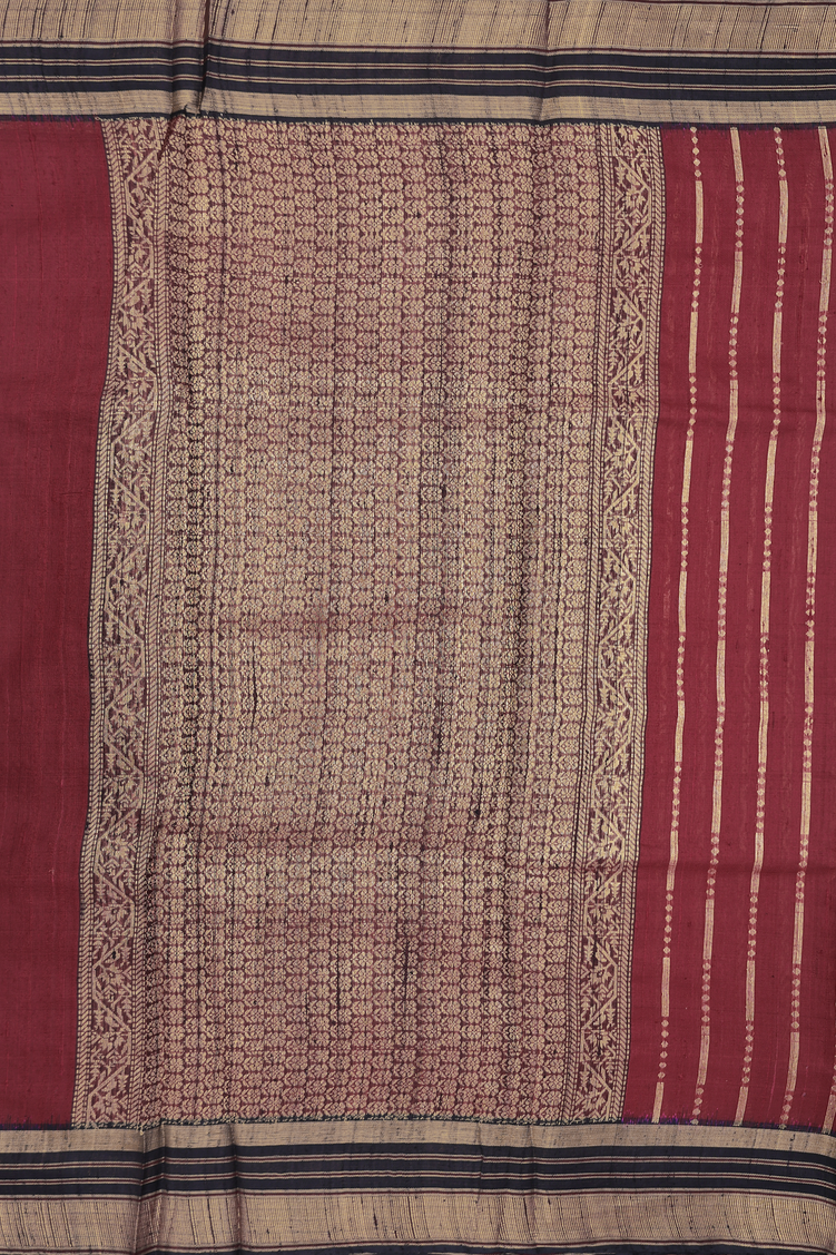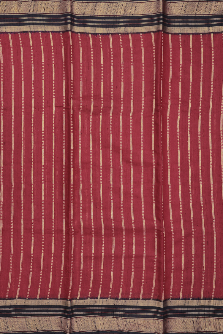 Jute Saree In Berry Red With Stripes Design