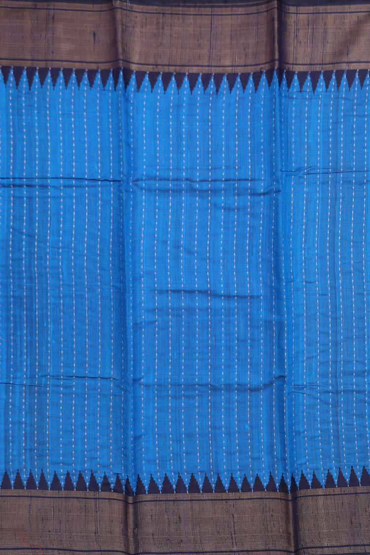Jute Saree In Cerulean Blue With Stripes Design