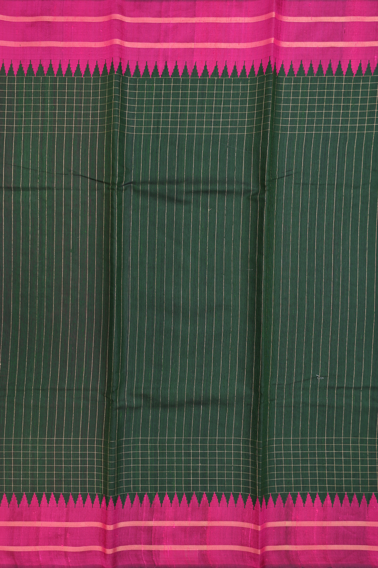 Jute Saree In Dark Green With Stripes Design